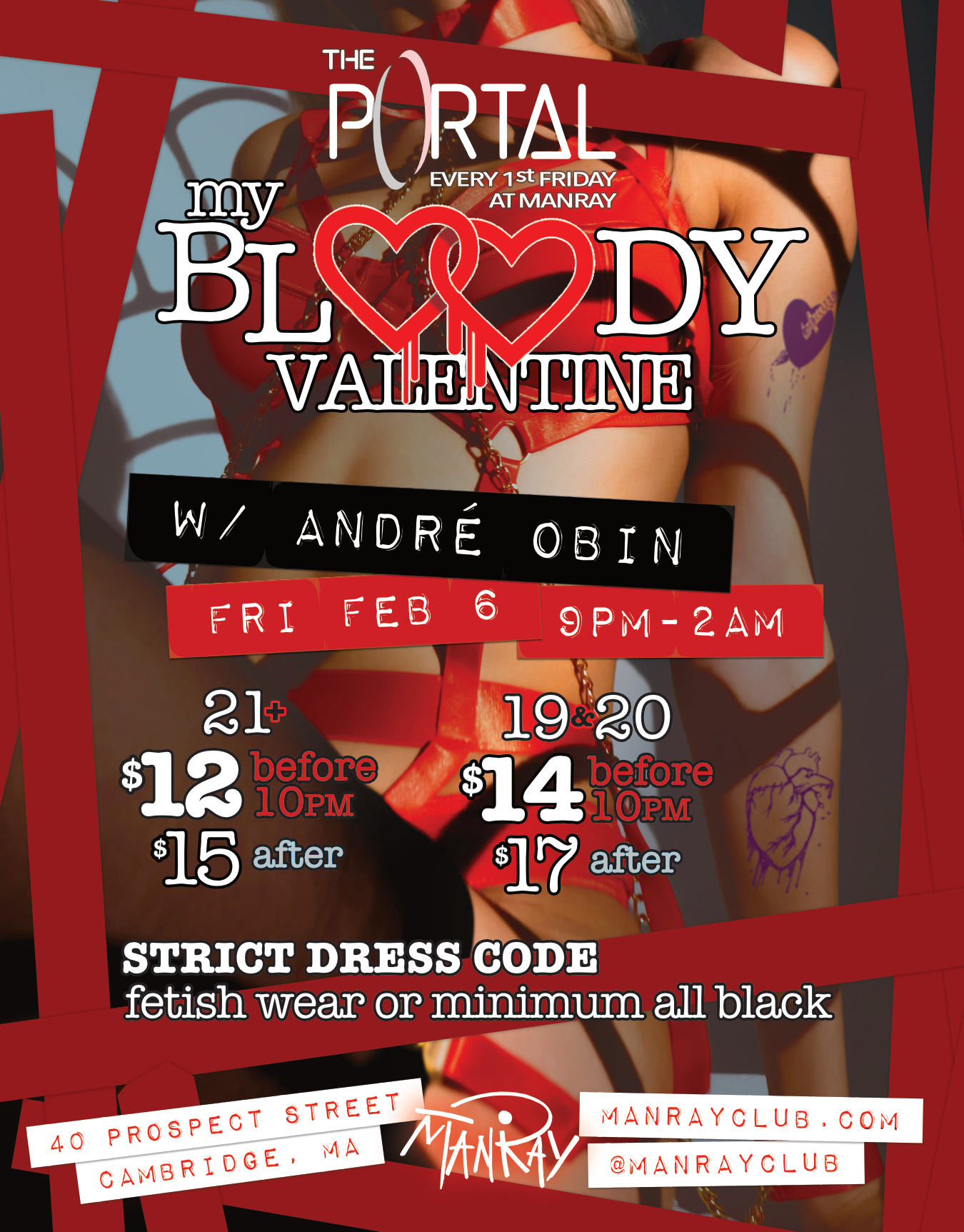 Local nightclub and concert venue, ManRay, required the creation of graphical assets for their monthly specialty fetish club event, The Portal. Moreover, they wanted to have the event exhibit a different goth/fiendish/industrial music fetish theme each month yet still be recognized as the same event; i.e., establish and maintain their own branding. In particular, the client needed this design to be outputted in and optimized for multiple formats: a printed 1/4″ page flyer, a 1080×1920 pixel display image (for internal monitor signage at the venue) as well as a square aspect ratio image to be used for social sharing. Besides curating royalty-free/copyright-free graphic assets and typography aligned with ManRay and The Portal event’s brand, this effort often involved the application of creative image manipulation to otherwise “goth up” a scene or to emulate another existing brand without tempting copyright infringement.